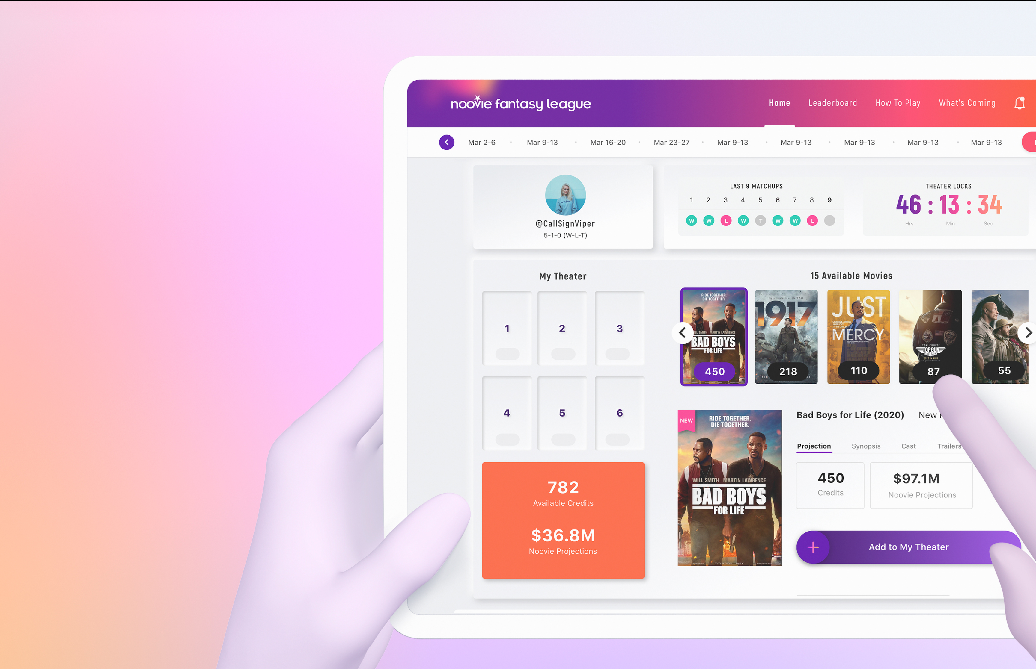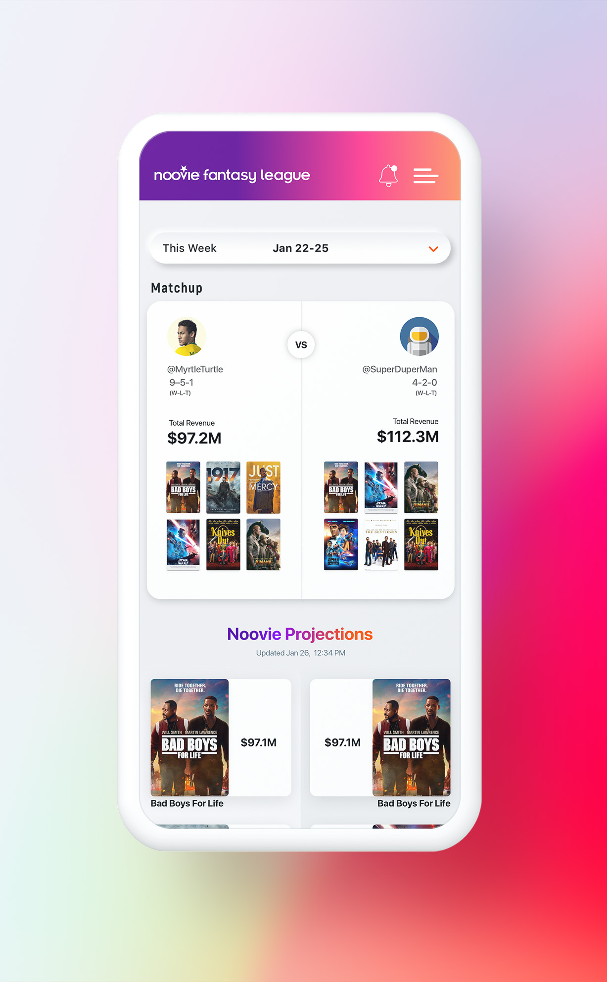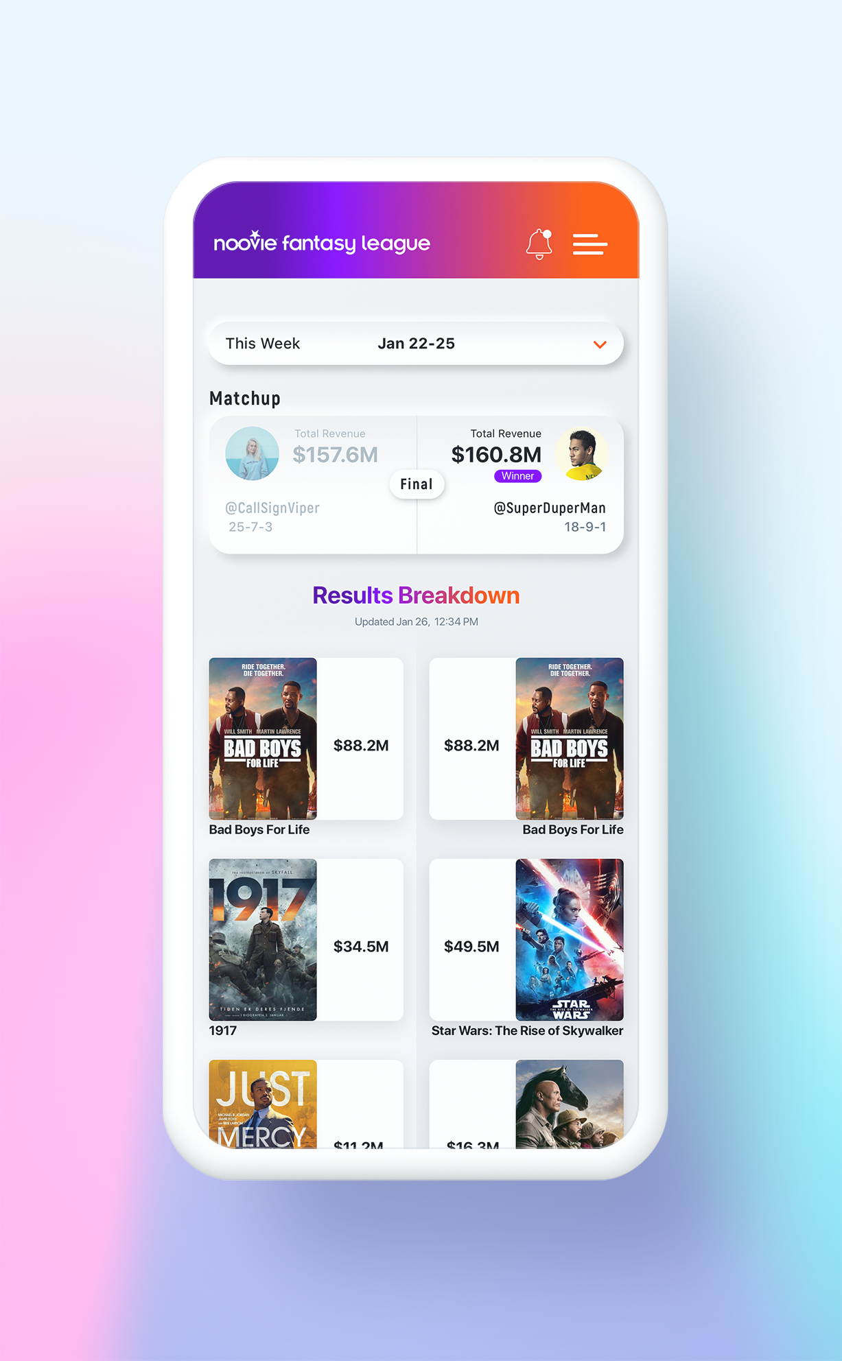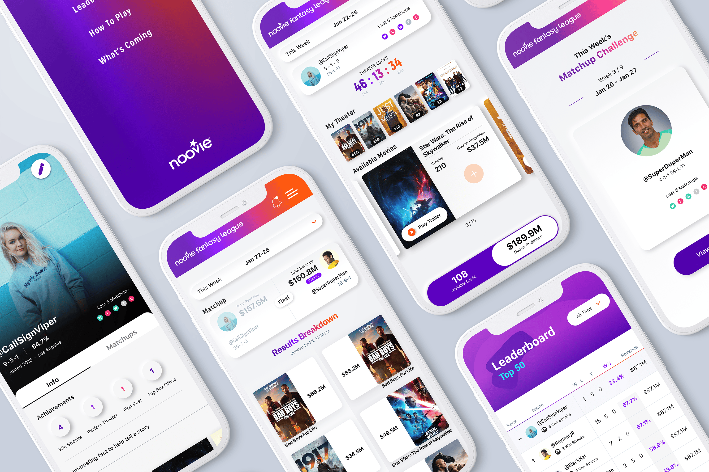Noovie Fantasy League is a fun and engaging game for movie lovers. Think fantasy football meets box office success.