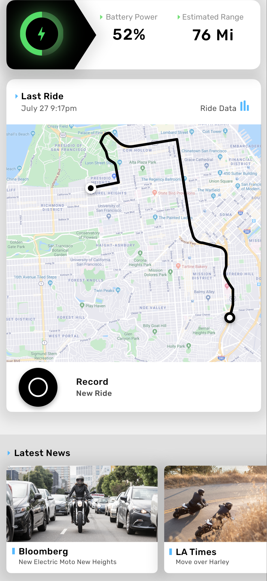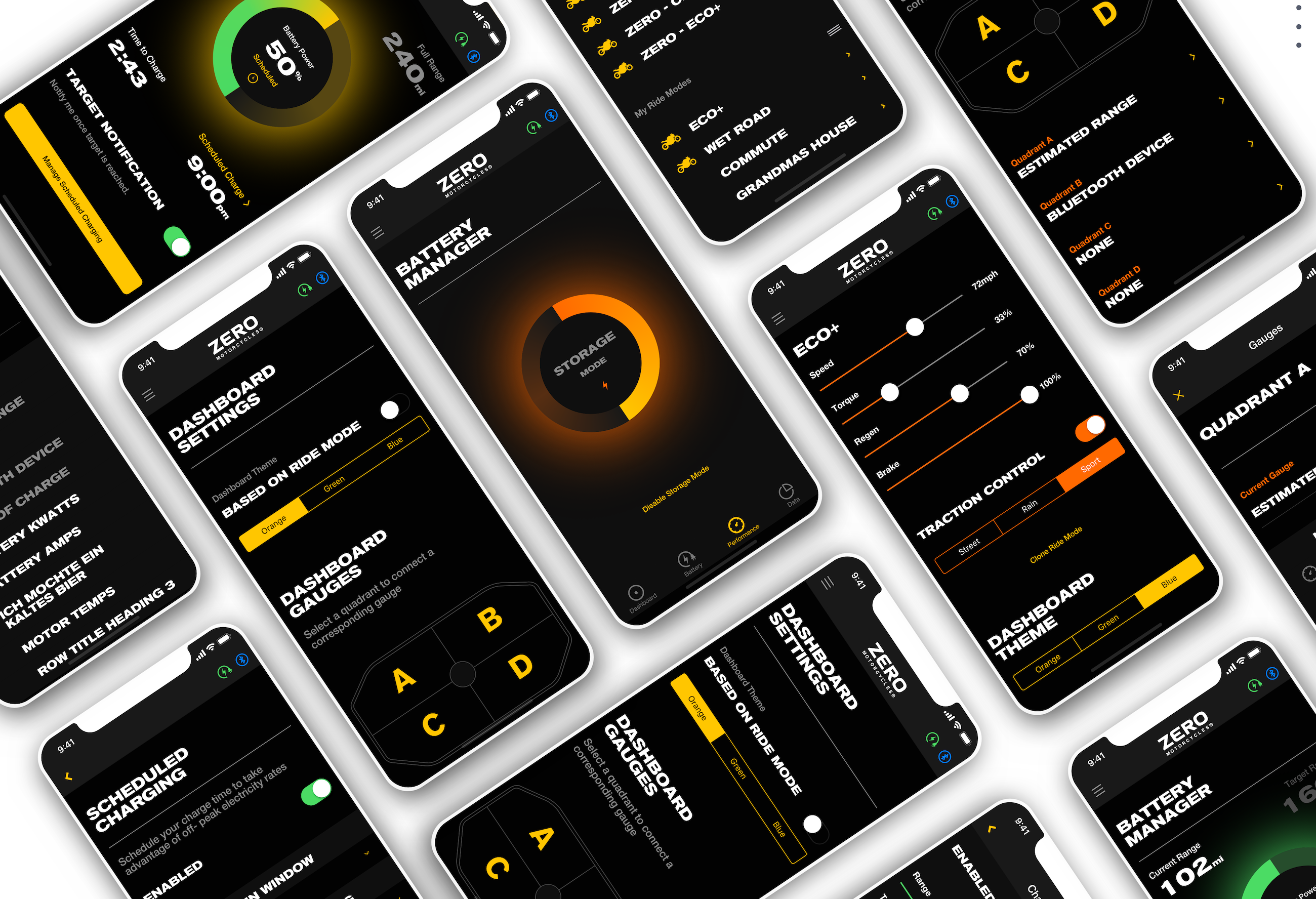I was the Design Lead for the development of Zero Motorcycle's "Next Gen" app for it's full lineup of all-electric motorcycles. The app connects to the bikes dashboard and firmware to control performance, battery power, and record, replay, and share ride data, creating the industries first "Smart" Motorcycle.